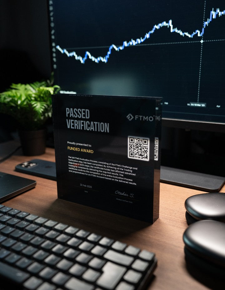 "Passing a prop firm challenge felt amazing, but seeing my certificate displayed as a Trading Trophies made it feel real. Every time I look at it on my desk, it reminds me that the grind paid off."